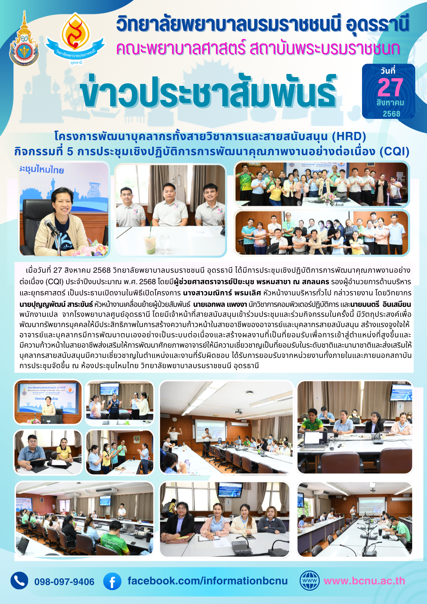 โครงการพัฒนาบุคลากรทั้งสายวิชาการและสายสนับสนุน (HRD) กิจกรรมที่ 5 การประชุมเชิงปฏิบัติการการพัฒนาคุณภาพงานอย่างต่อเนื่อง (CQI)