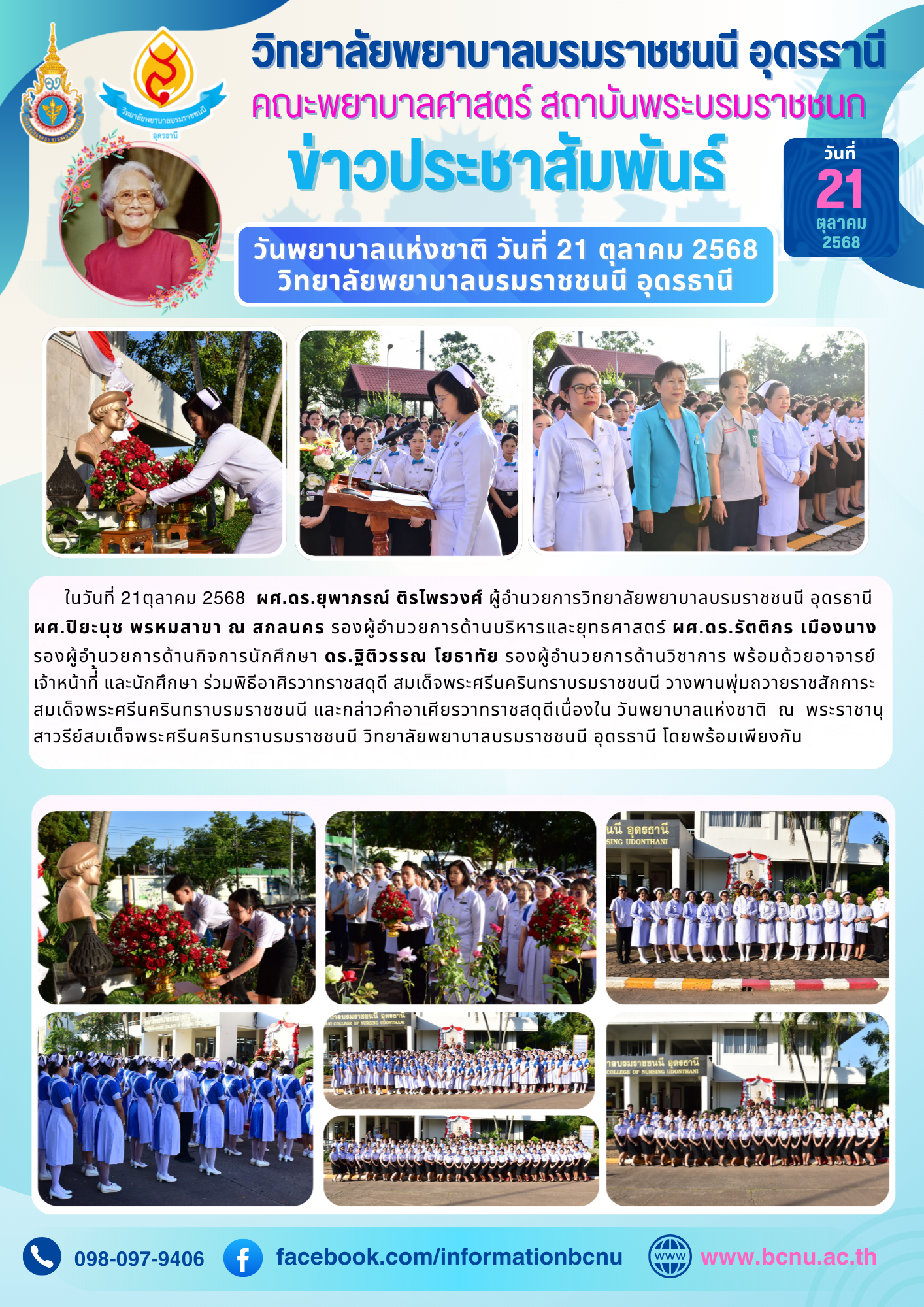 วันพยาบาลแห่งชาติ วันที่ 21 ตุลาคม 2568 วิทยาลัยพยาบาลบรมราชชนนี อุดรธานี