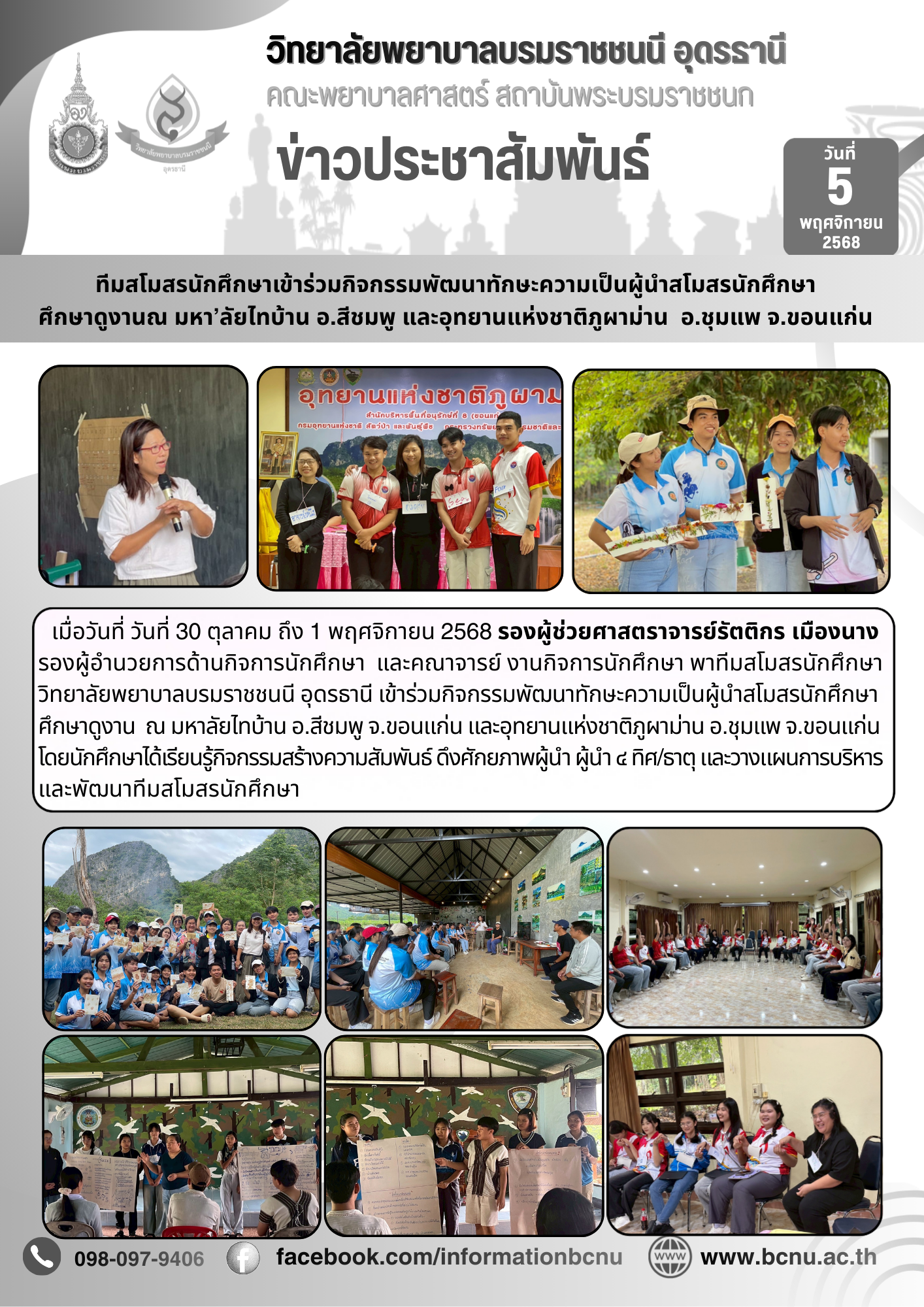 ทีมสโมสรนักศึกษาเข้าร่วมกิจกรรมพัฒนาทักษะความเป็นผู้นำสโมสรนักศึกษา ศึกษาดูงานณ มหา’ลัยไทบ้าน อ.สีชมพู และอุทยานแห่งชาติภูผาม่าน อ.ชุมแพ จ.ขอนแก่น