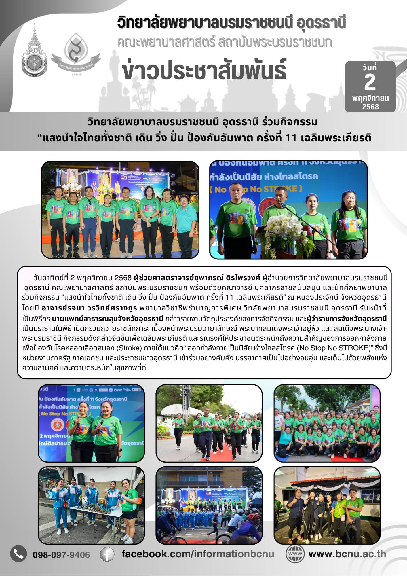 วิทยาลัยพยาบาลบรมราชชนนี อุดรธานี ร่วมกิจกรรม “แสงนำใจไทยทั้งชาติ เดิน วิ่ง ปั่น ป้องกันอัมพาต ครั้งที่ 11 เฉลิมพระเกียรติ